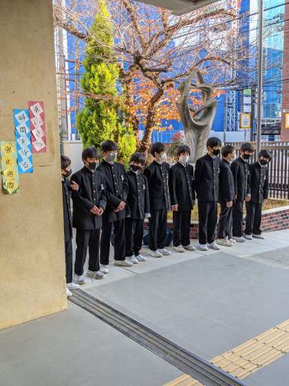 朝のあいさつ運動を男子バレー部が頑張っています。