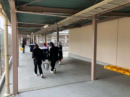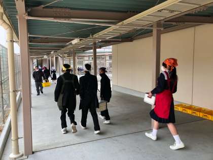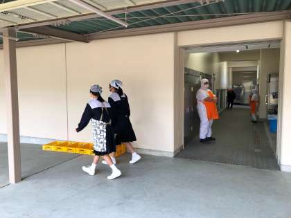4時間目が終わり、当番の人が給食室にやってきました。今日は手を洗う水が、一際冷たいです。