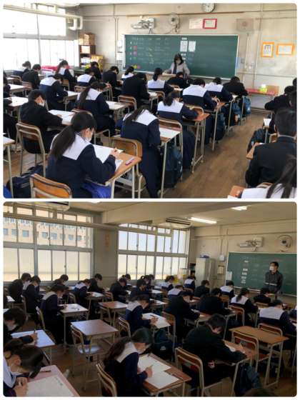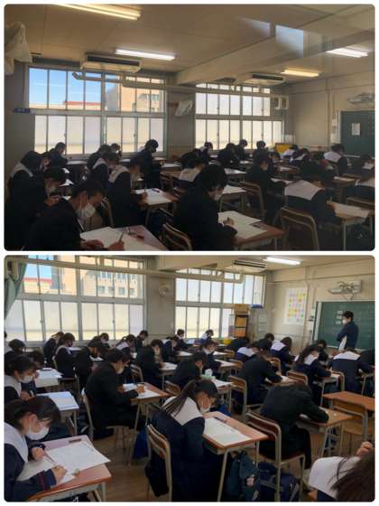 本日、学年末テスト2日目です。英語、美術、保健体育のテストを行っています。