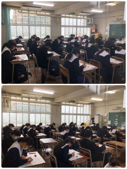 2年生は本日、理科、社会、技術・家庭のテストを行っています。