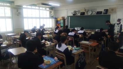 卒業の歌「友」をBGMに聴きながら、残り少ない給食の時間を噛み締めています。