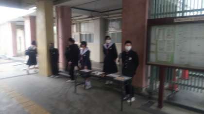 風紀委員が体育館前で挨拶運動をしてくれています。また、予鈴遅刻生徒への声かけをしてくれています。