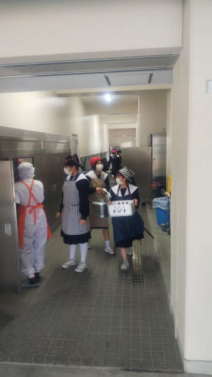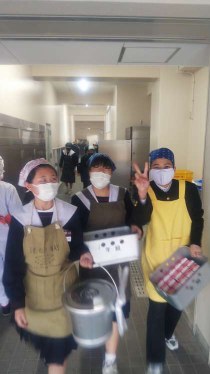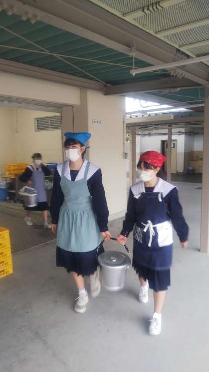 給食係が教室へ運んでくれています!