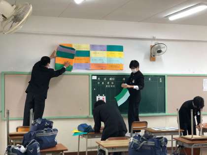 掃き掃除、拭き掃除、壁面に貼っていた目標などの掲示物をはがしていきました。
