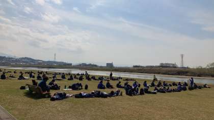 昼食後、ごちそうさままでの束の間の時間です。 寝そべっている人もいるようです。