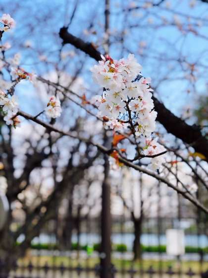 桜が少し咲いています。暖かい日が続きそうですので、開花が進みそうです。