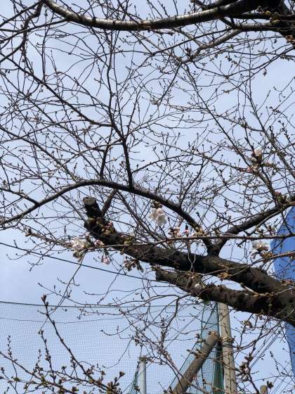 ?風はありますが暖かい午後です。桜も朝より開花が進んだような気がします。