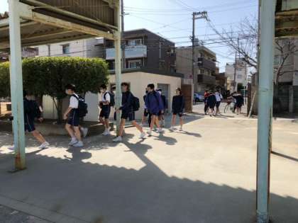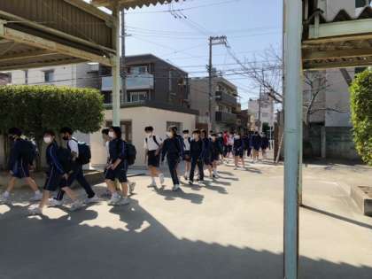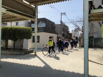 先頭の1年1組が学校に帰ってきました。