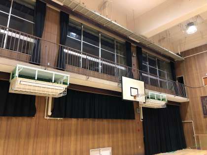 わかりにくいかもしれませんが、体育館の暗幕カーテンが全て取り替えられました。開閉の際は、丁寧に扱ってほしいです。