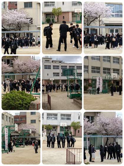 入学式後の様子です。屋外で記念撮影等をしています。次の登校は始業式の8日です。