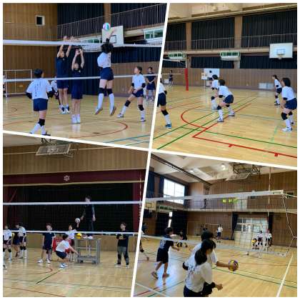 バレーボール部の練習の様子です。男女一緒に試合前の調整をしています。17日土曜日の春季大会に向けて日々頑張っています。新入生のみなさん。是非バレーボール部に体験に来てくださいね。