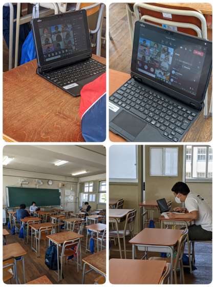 本日も8時45分からオンライン学活をしています。2年生は、学年集会をしています。この後、動画を見てコメントを書いて登校です。