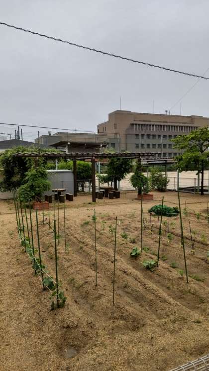 雨です。作物にとっては嬉しい雨かもしれませんね。本校の作物もスクスク成長しています。