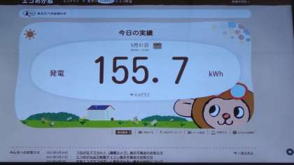 良い天気でしたから、発電量も多かったです。本日はどれぐらい貯まるでしょうか^_^