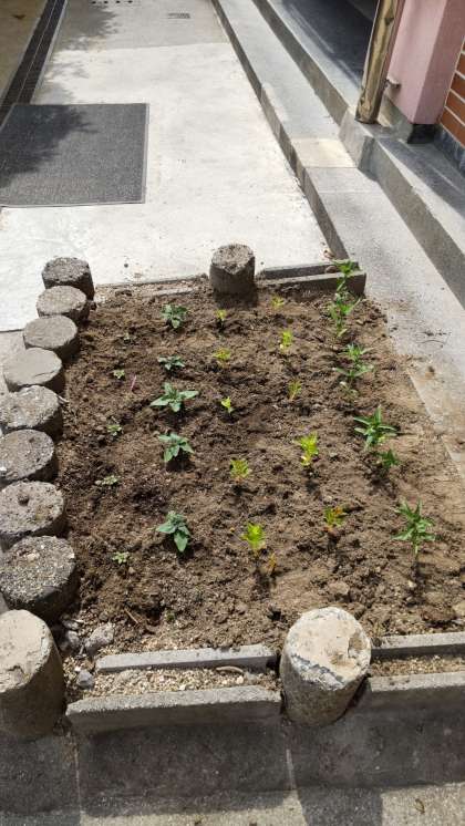 職員室前の花壇にはどんなお花が咲くのでしょうか。