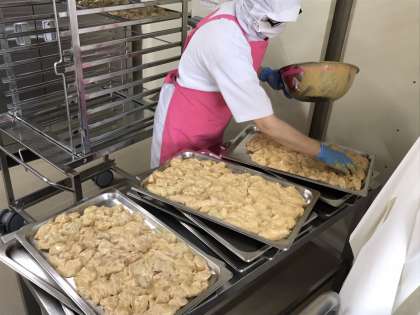 鶏肉のカレーマヨネーズ焼きを作ってくれています。