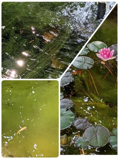 気温が30度になっています。 熱中症に気をつけましょう。 池の写真で涼を!