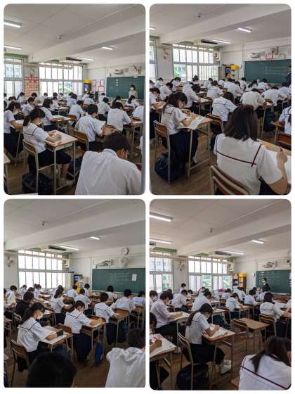今日からの3日間は期末テストです。 写真は3年生。頑張りましょう。