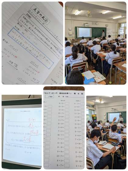 1年生の数学です。 文字式の学習。みんな集中して頑張っています。