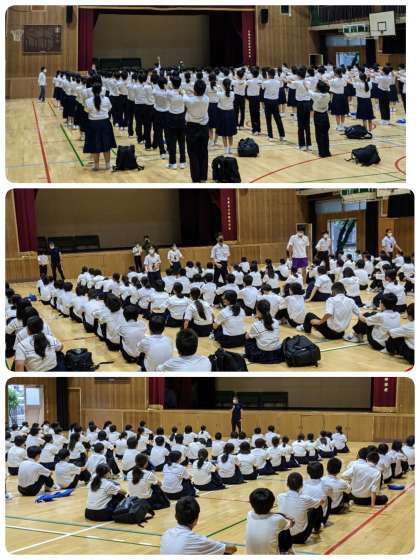 水曜日、1年生の学年集会です。 時間を守って集合できています。