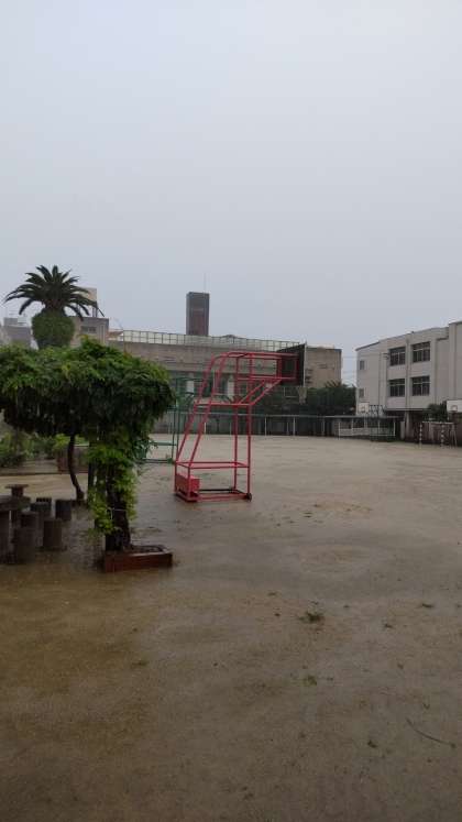 強い雨です。登校の際は気をつけて、余裕をもって登校してください。