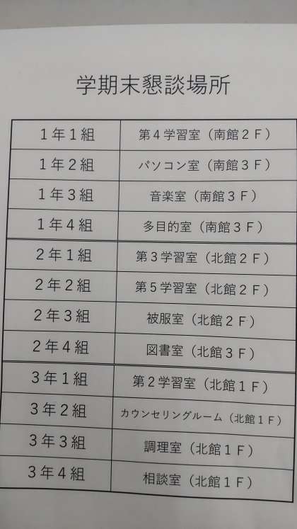 学期末懇談の場所を、下記(写真)のように変更しています。