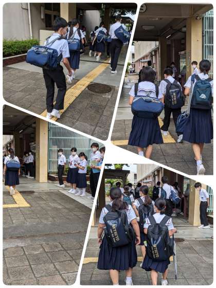 朝方は大雨と雷でしたが、今は雨は止んでいます。元気に登校しています。