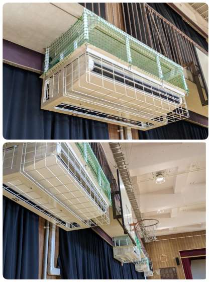 今日は体育館で学年ごとに集会をしていますので、新しく設置したクーラーを稼働しています。快適です。