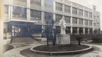 当時、校舎正面にモニュメントがありました。