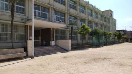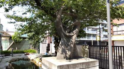現在は校舎正面はグラウンドになっており、モニュメントは正門横のビオトープに設置されております。