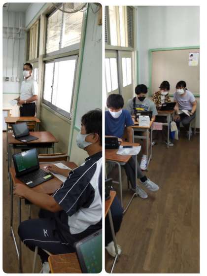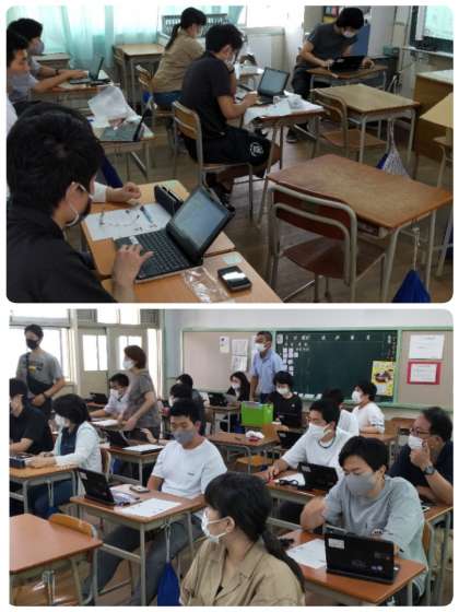 タブレット端末を使って、双方向通信のやり方や、学習教材の活用方法を確認しました。