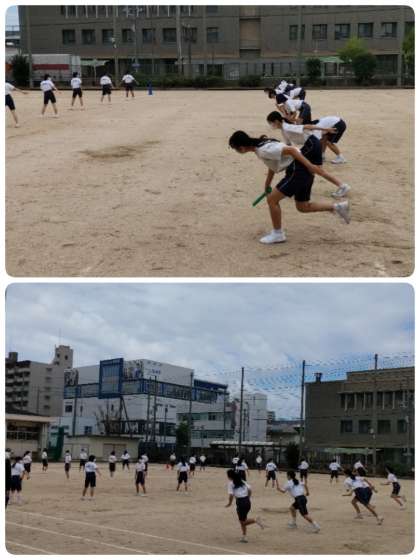 リレーの練習をしています
