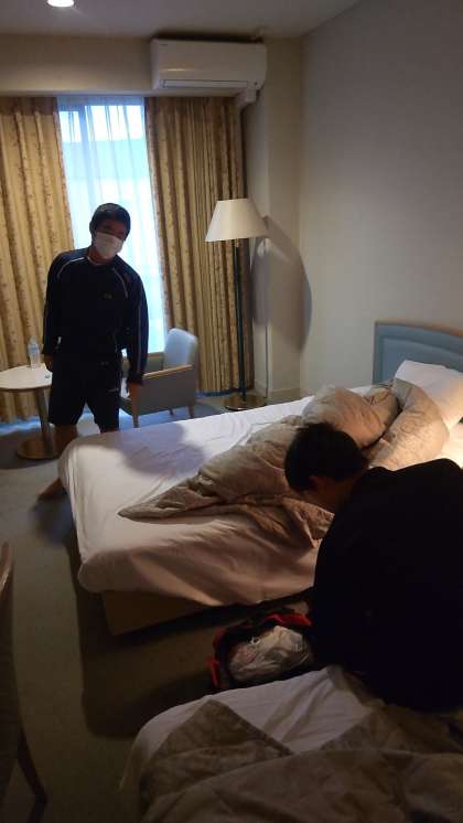 夜中は、イビキや寝言、時計のタイマー音(謎)で大合唱の男子フロアでありましたが、、、笑