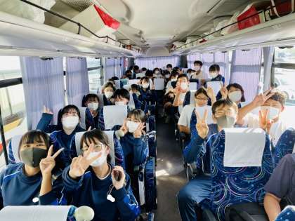 3年生 兵庫県へ向かうバスの車内です