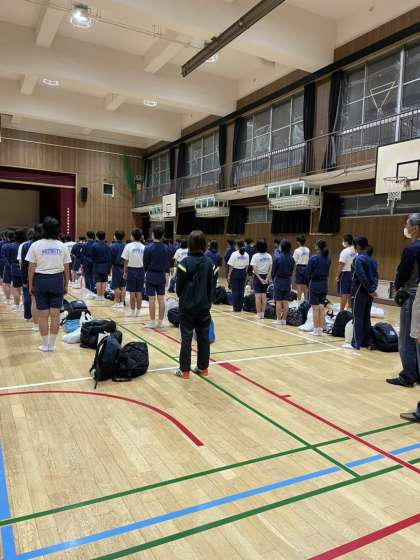 体育館にて、