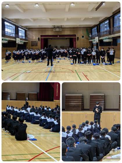 3年生の学年集会です。 委員長会からの連絡の後、全体合唱の練習をしています。