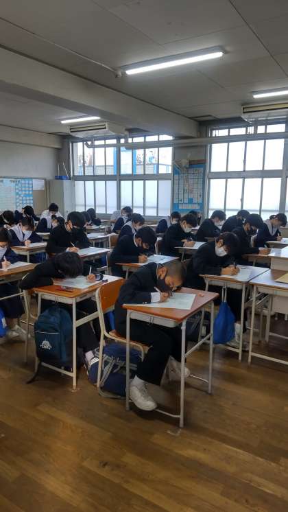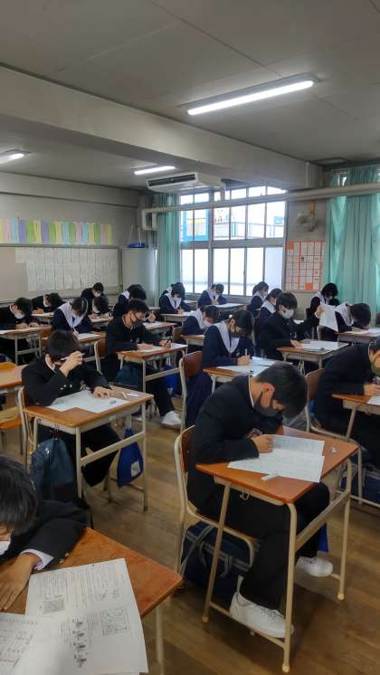 2年生1組・2組のテストの様子です