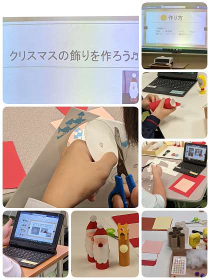 タブレットで手順を確認しながら、クリスマスの飾りを作っています。