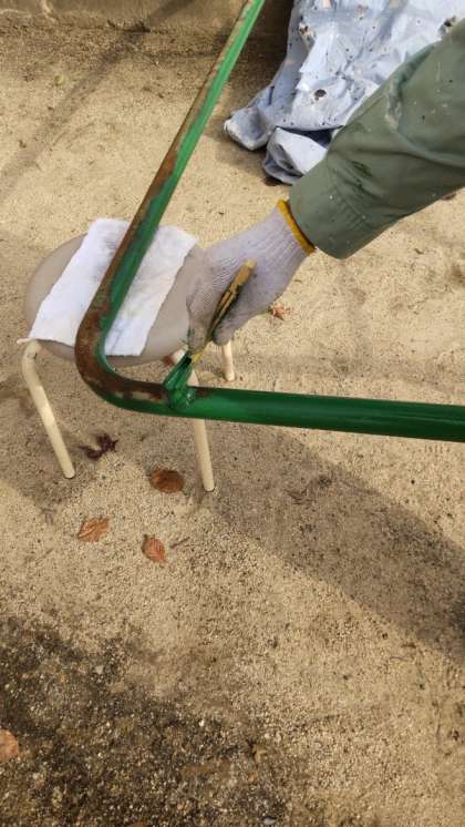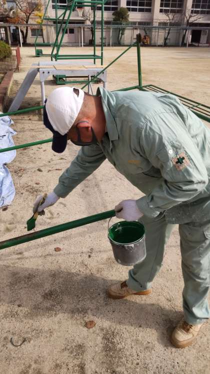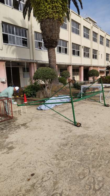 防球ネットの修繕をしてくれています!