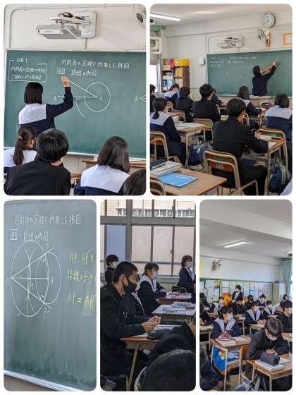 円周角の定理を利用した接線の作図、そして証明問題に取り組んでいます。