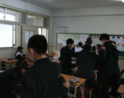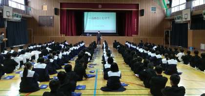 本日、1限目に体育館にて、一泊移住の全体説明がありました。その後、教室に戻り、野外炊飯やバスの座席を各クラス楽しく決めていました。