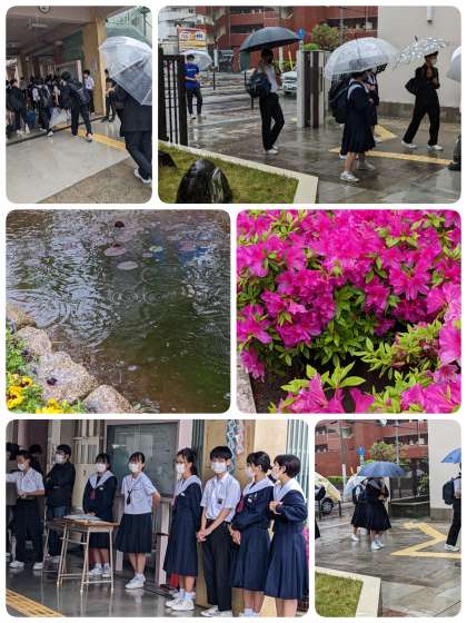 雨の中の登校です。
