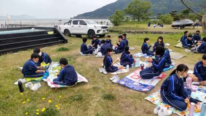 それぞれお気に入りの場所を見つけての昼食です(^-^)/