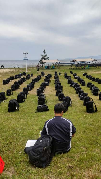 ではなく、学年主任味本先生は、皆の鞄を見張りながらの昼食です。