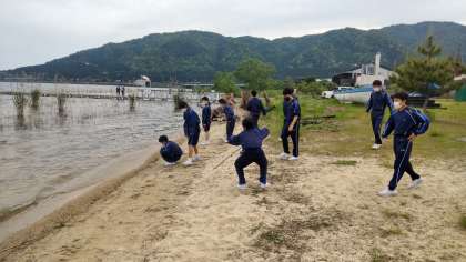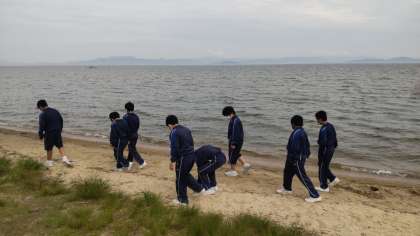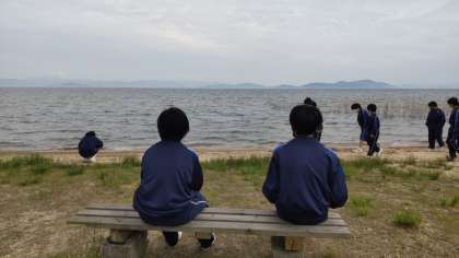 まが玉づくりを終え、湖畔を散策しています♪