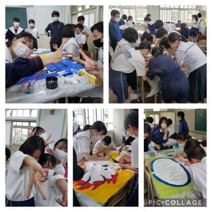 5月16〜18日の放課後に学級旗を作成しています。