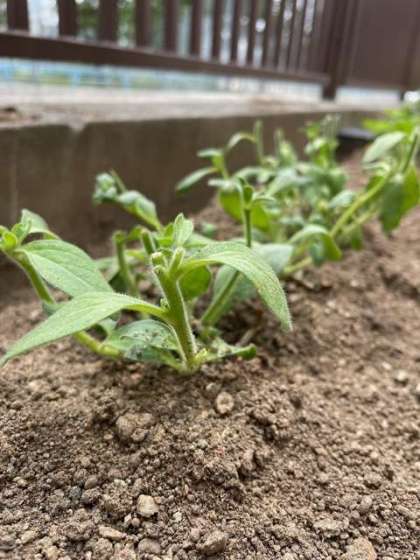 ?ペチュニアの花を切り戻しして、特別支援学級の花壇に植えました。