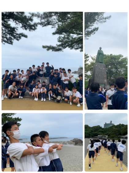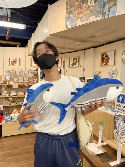お土産屋さんのクジで3等(カツオのぬいぐるみ)を当てた生徒がいます。