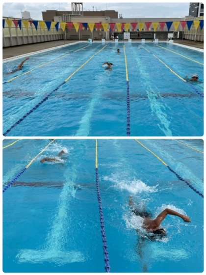 水泳部が夏の大会に向けて頑張って練習していました!ファイト(^^)!