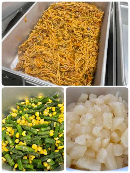 スパゲッティのコクと、サラダや和なしのサッパリ感が楽しめます♪